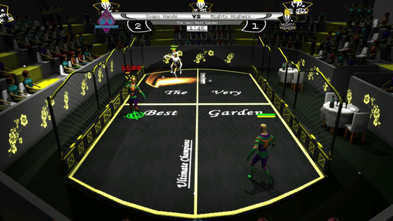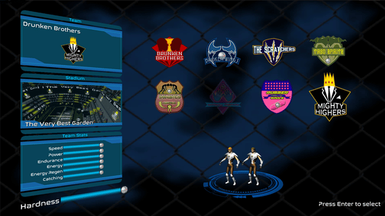 Jammerball is a sports game based on dodgeball and inspired by the classic arcade game Windjammers. There are 8 teams in Jammerball, and all of them have their own unique arena. 6 teams have a specific weakness in some aspect of the game, one with none, and one with all.