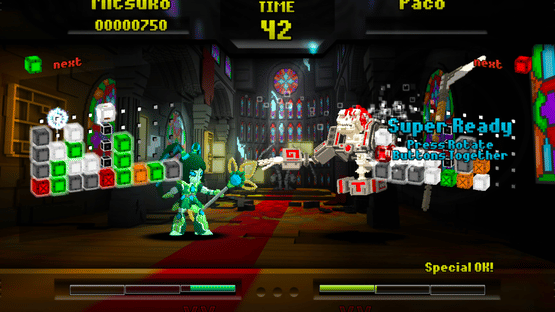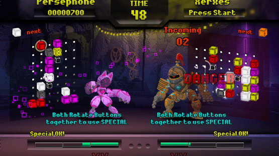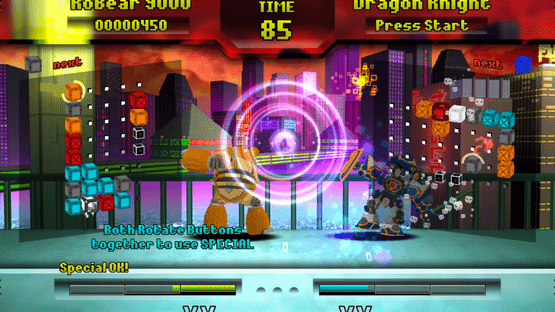 Robo Puzzle Smash is an intensely addictive competitive puzzle game that will test your wits and skill against your opponent in a high-energy, block bashing brawl with a twist! Drop the blocks and rotate your field to match colored blocks together and set up combos. When the moment is right, use a Breaker to smash the blocks to send them to your enemy!