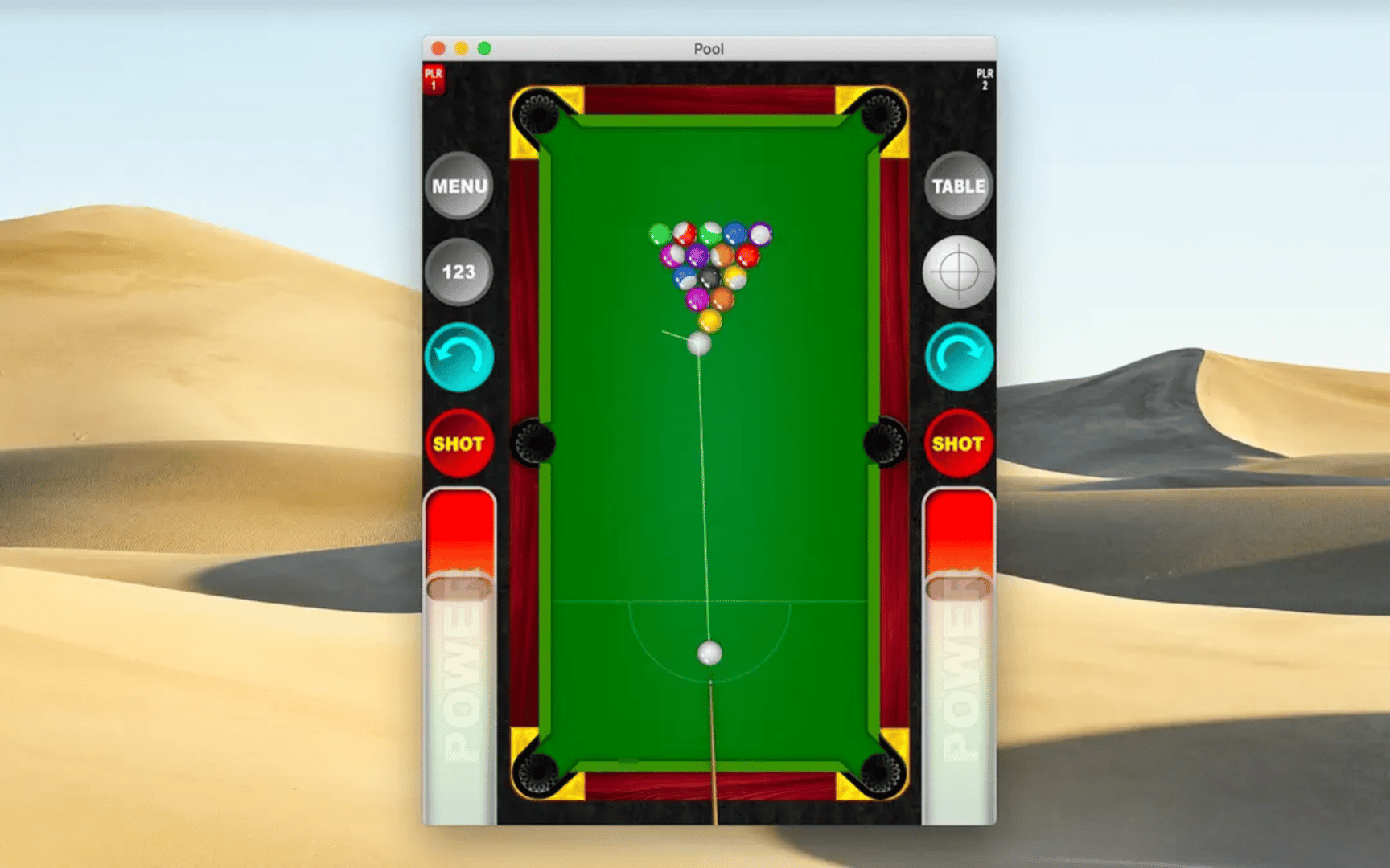 Play 8-ball pool against computer or your friend. The object of the game is to pocket your set of assigned balls (solid or striped) and finally pocket black ball to designated pocket.