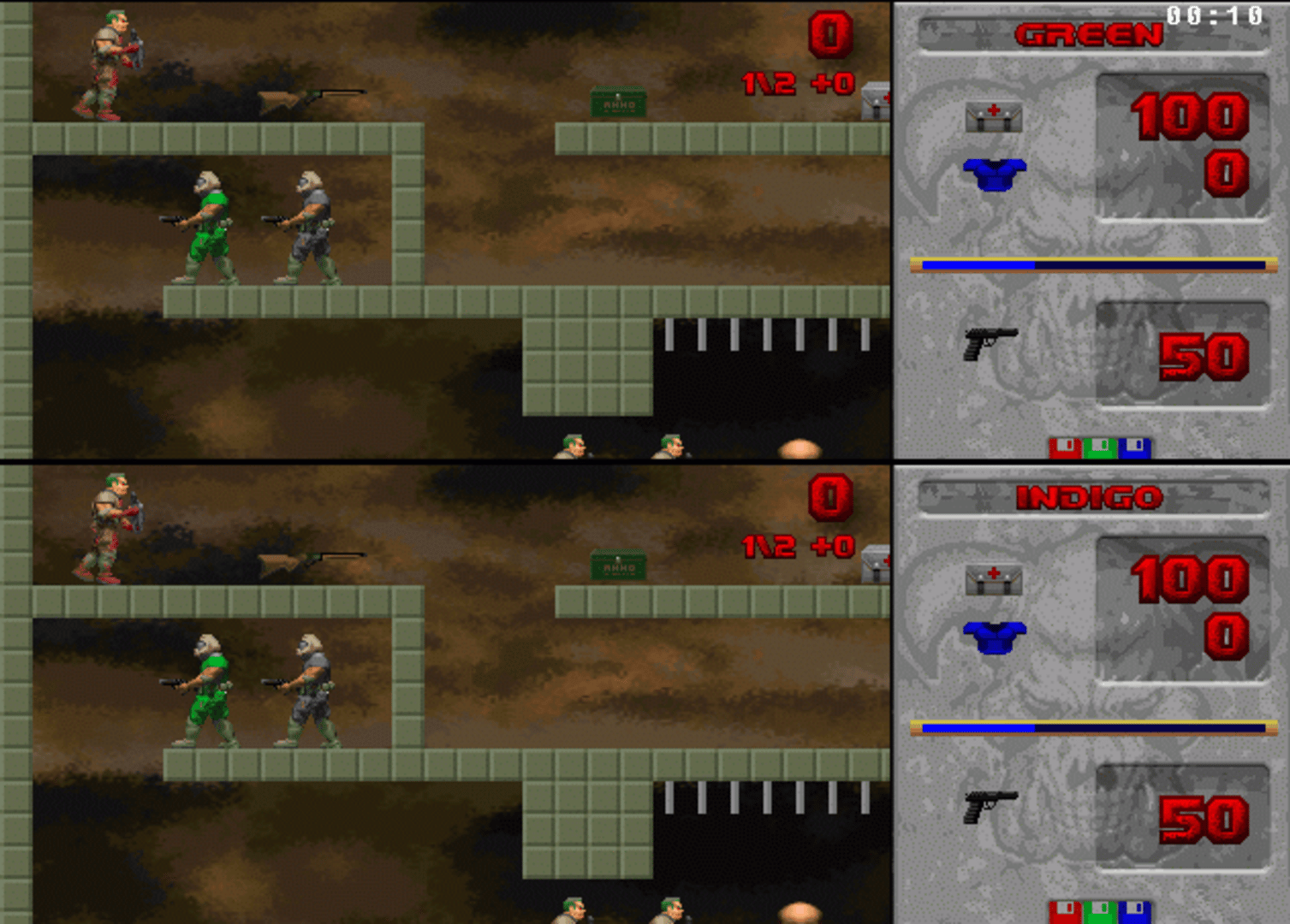 Doom 2D is a fan-made DOS-based freeware side-scrolling video game based upon Doom. Doom 2D is essentially the original Doom translated into a two-dimensional arcade or console-like shooter. The player resumes their role as Doomguy, who must do battle with various hell-spawn.