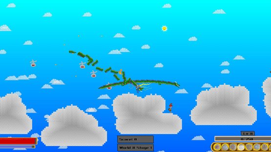 A challenging arcade side-scroller where you defeat enemies, fight bosses, level up, and unlock upgrades and new spells. Get upgrades after each run to go farther in subsequent tries. Even with full upgrades, completing all ten worlds in one run is no easy task!
