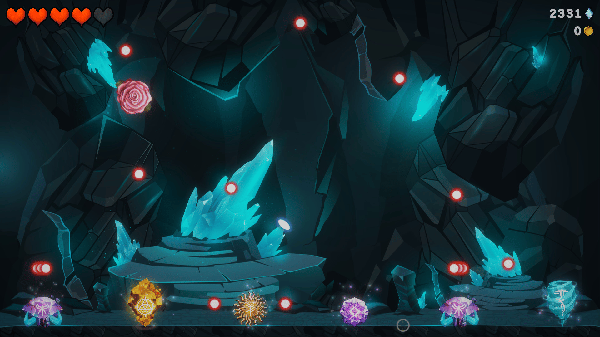 Manaya is a simple bullet hell action game where the player enters a cave to kill monsters. Search for treasure rooms to find passives and merchant rooms to purchase buffs. Defeat hard bosses to unlock new characters.