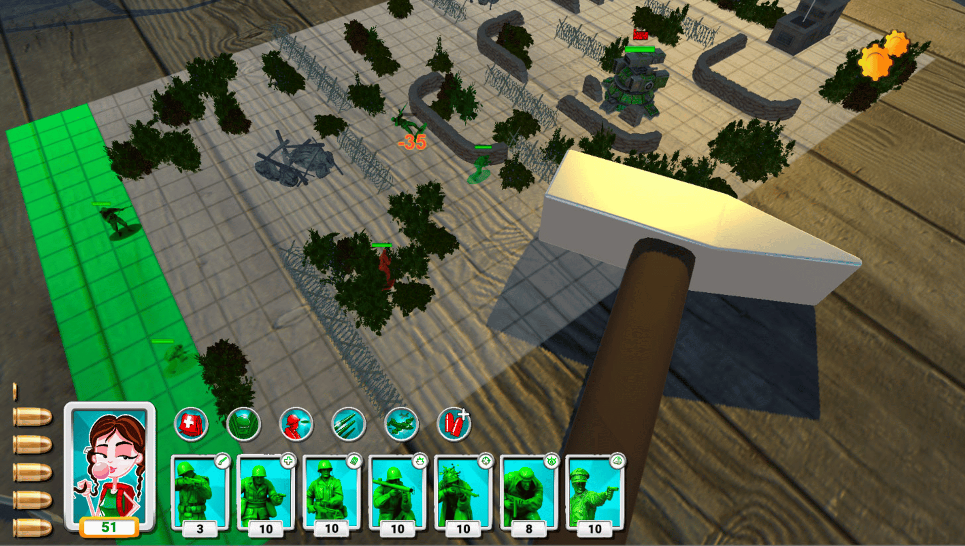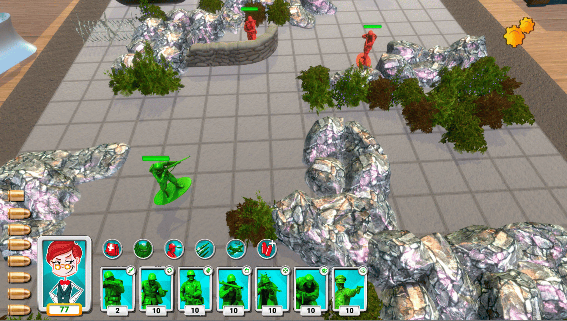 Toy soldiers! Prepare for battle! The house is full of enemies and we must drive them out! Sniper - get in position! Grenadier - your target is the tower. Infantry - attack! Check every nook and cranny, battle the enemy in the attic, in the garden, up in the treehouse. Build up your unique squad and take back the house!