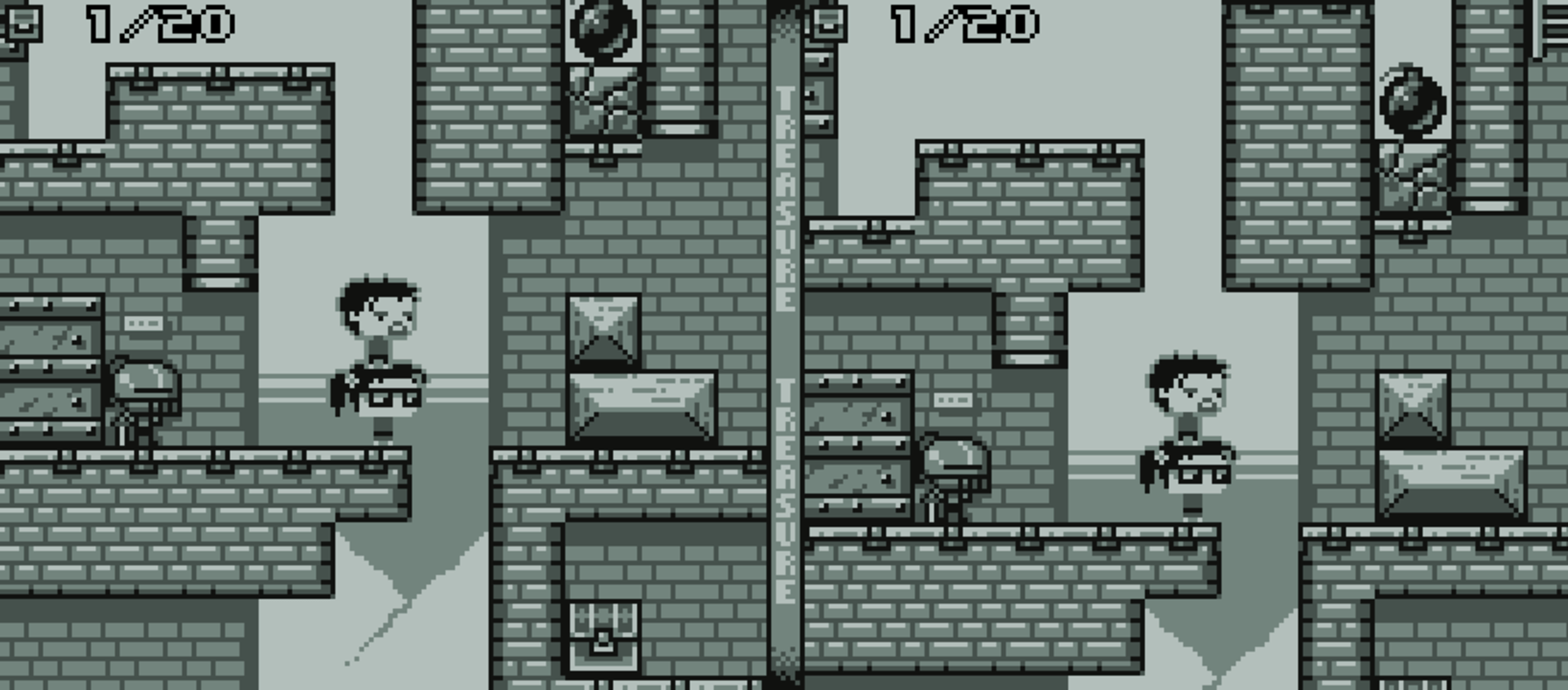 Trixie and Troy need to combine their talents, think carefully and blow things up to find all the treasures hidden in an abandoned castle. This is a two player split-screen puzzle/platform game, with local co-op only. You can use two joypads if you have them, but snuggling together on one keyboard is just as fun. The castle is pretty maze-like so there’s plenty of exploration to be done too.