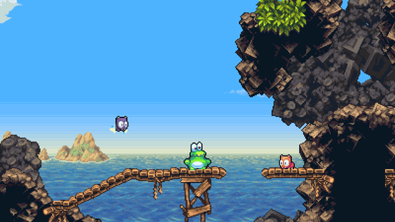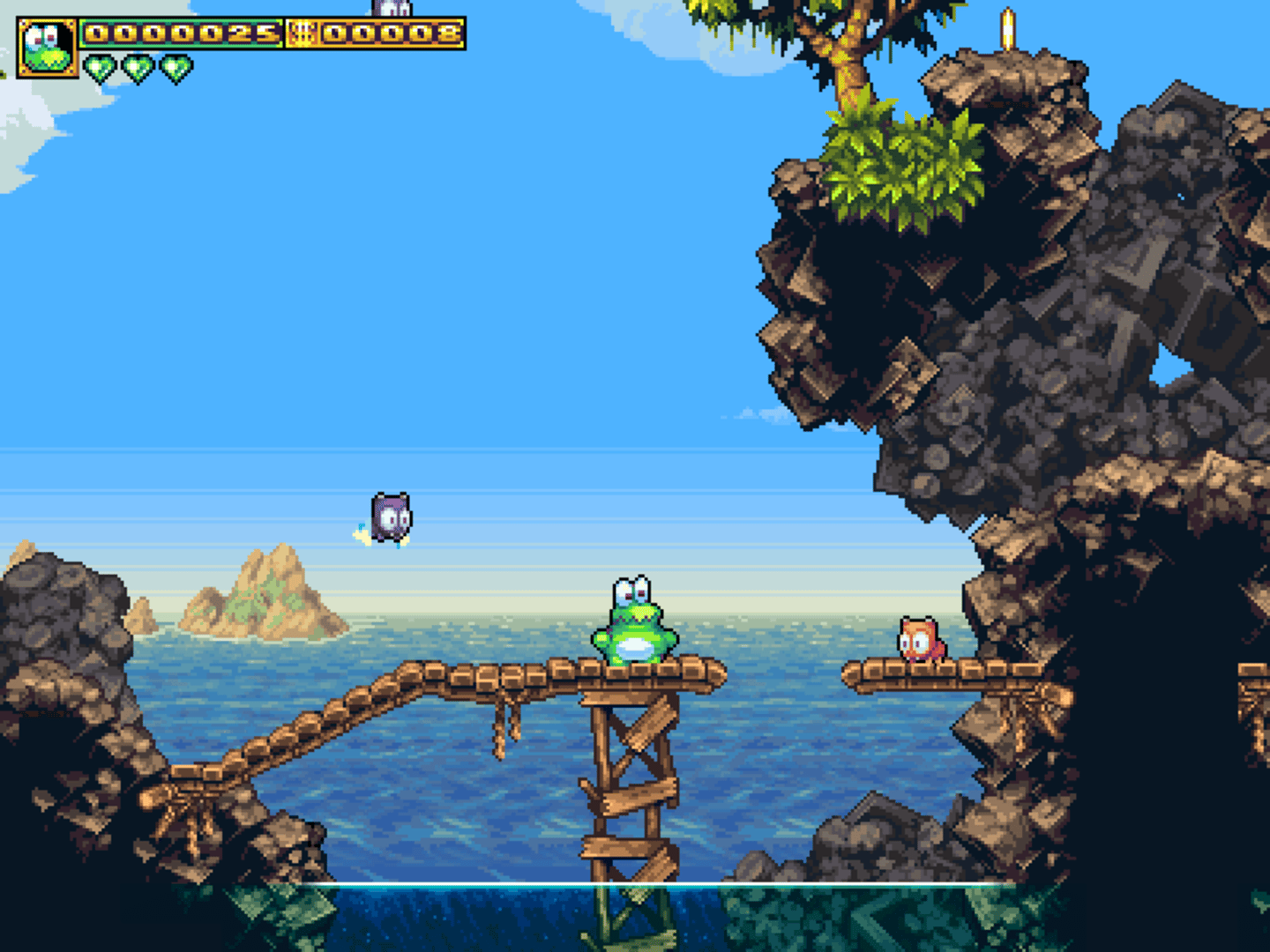 Play as a frog in this action adventure game, with characters to talk to, things to buy, puzzles to solve, and a wide, complex world to explore. Frogatto's key mechanic is an unusual twist; like any frog, he jumps, swims, and snags bugs with his tongue, but unlike any frog before him, can spit those bugs out with deadly force.