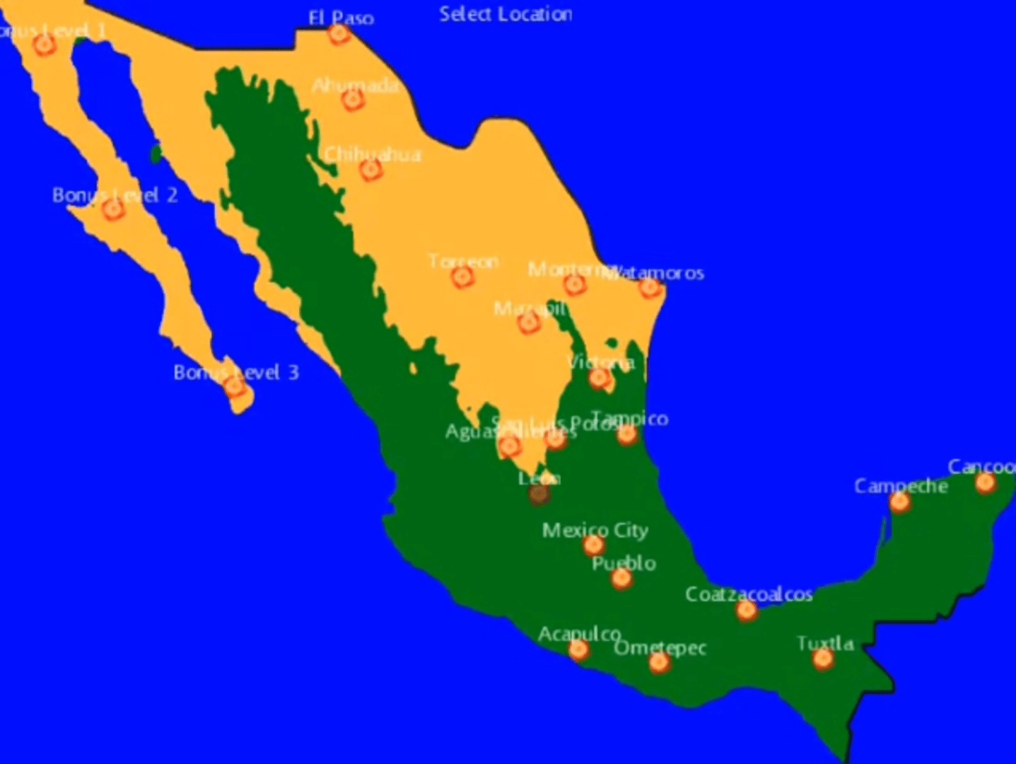 Join a Mexican in his journey to America! Play through many different cities of Mexico to try and get from the Yucatan Peninsula to the United States. Also, play through the challenging bonus locations!