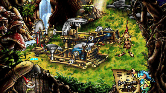 Woodspell is a mixture of an adventure-like puzzle-solving game and an activity center with educational elements. The game contains various puzzles, such as matching the sound of a song or the classic "fit the right objects in the correct location" variant. Players also hear stories set in the woodland, filled with elves and fairies, or even print and color the locations they see. The game features hand-drawn scenarios and characters, and original music by the Italian band Tazenda.