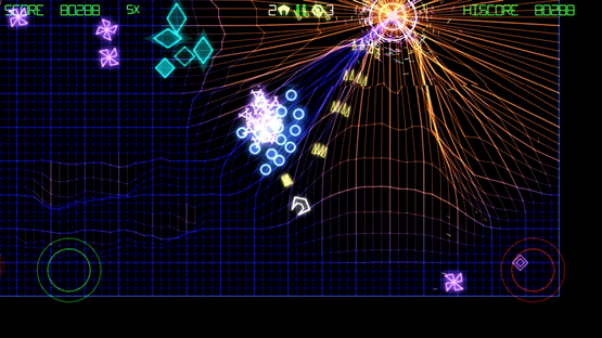 GridWars is a video game inspired by Bizarre Creations' Geometry Wars by Canadian developer Marco Incitti. The first version of the game was released as freeware on December 21, 2005 on Marco Incitti's Blitz Creations website. Although other freeware games similar to Geometry Wars exist, GridWars eventually became so popular that Bizarre emailed Incitti and asked him to take the game down, citing that they were "beginning to feel the Geometry Wars clone's effects on our sales via Microsoft now and are beginning a process to begin to more robustly protect our copyright and intellectual property". The link to the download was pulled from the site on August 8, 2006. The game was subsequently released on a German website dedicated to Flash and freeware games and is available for Windows, OS X and Linux. Unlike Geometry Wars which eventually plateaus in difficulty facilitating high scores in the range of hundreds of millions of points, GridWars 2 has an exponentially increasing difficulty curve. Eventually, the enemy spawn sites become so large that they nearly envelop the entire grid. Another important difference from Geometry Wars is the ability to "farm" black holes. Besides distracting and swallowing enemies, the black holes can net points (and thus bombs/lives) based on the square of the number of enemies they have swallowed.
