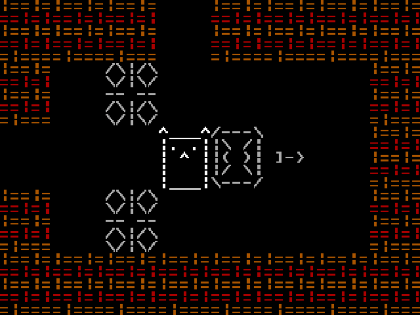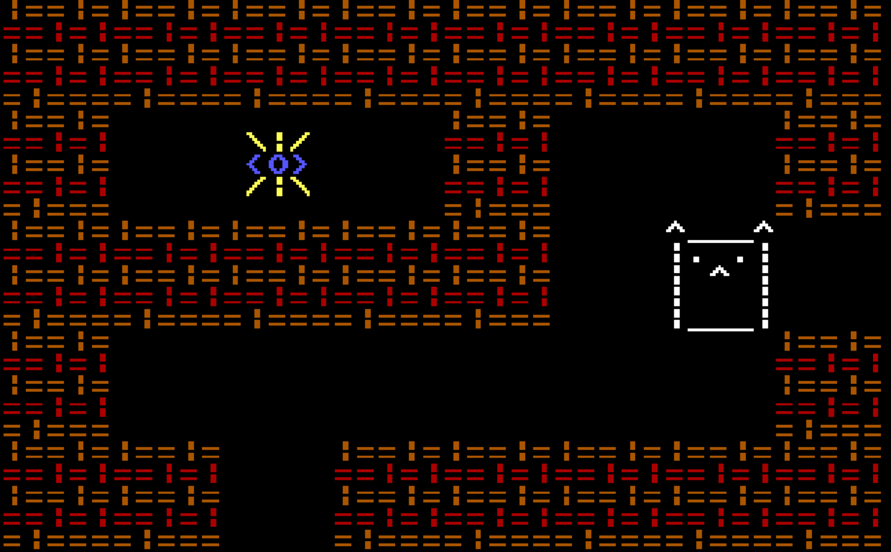 Catloaf 2600 is a small, minimalist, retro-style type of game. You are Catloaf. Through mysterious means, the nemesis foe, Master Meatloaf, has planted you inside his twisted creation, a labyrinth of puzzles and traps. The goal is to find your way through the maze and to Master Meatloaf himself, who is waiting at the end. The path is blocked by a series of puzzles. Find keys to unlock doors, push secret walls to reveal new rooms, move a boulder down a corridor to complete a sokaban-style puzzle, and memorize the path around traps before the lights go out. Switches shift the walls of the maze to reveal new paths and secrets. The graphics are drawn with all ASCII characters. You use the keyboard to navigate.