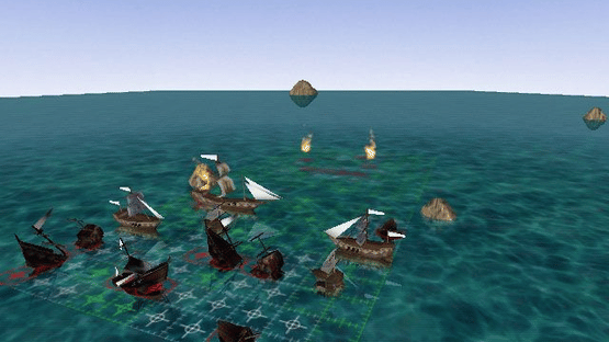 3D Armada is a 3D video game adaptation of the classic Battleship home game. Either a human player can play against the computer or human players can compete against each other via TCP/IP network play. Each player gets a 10x10 grid of water squares that are occupied by a fleet of 10 ships-- there is one ship that occupies 4 squares and then there are 2 3-square ships, 3 2-square ships, and 4 1-square ships. Naturally, players can not see the other player's ships. A player makes random strikes against the opponent's nautical positions and is informed when one of the strikes hits something. This is used to estimate where more of a particular ship may lie. After one player manages to sink the other player's entire fleet, the game treats the participants to a replay of the entire battle, but with both fleets in plain view.