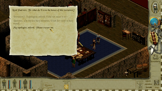 Siege of Avalon is a traditional fantasy-RPG with an isometric view. The setting is an imaginary land which has been ruined by wars and it is up to you to defeat the evil warrior Mithras, who strives to conquer the entire land. Only the fortress of Avalon resists to his evil intentions. The game is mainly story-driven, featuring many NPCs, and has action-based combat. It doesn't follow any particular set of RPG rules; characters level up after having gained enough experience from defeating foes. Class restrictions are rather mild, meaning that a fighter can learn spells and gain proficiency in magic, etc. This game has been described as an "episodic computer game novel". It is divided into six chapters. The first one is available for free download, but you have to buy the others in order to complete the story. Second chapter takes the events from where the first chapter ended, while third, fourth and fifth chapters are sort of add-ons to the main story. The sixth chapter is dedicated to the final battle with the evil.
