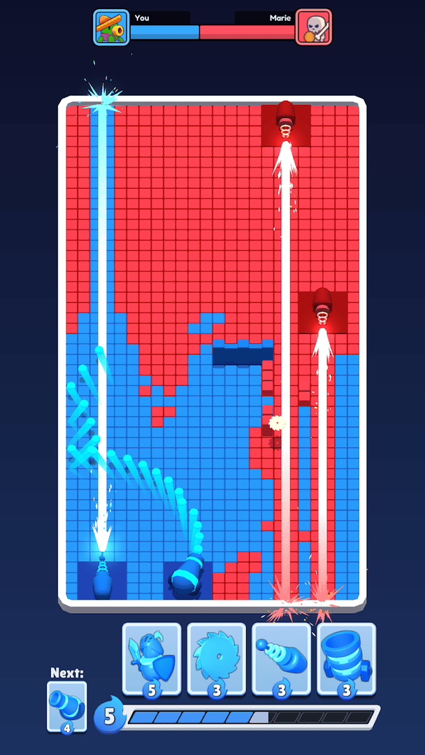 Dive into the thrilling battle arena where strategy meets vibrant chaos! In this card game players fight between red and blue to capture territory by coloring the arena. Each card unleashes unique units with special abilities to outmanoeuver opponents and dominate the game. Fight, strategize, and color your way to victory! Are you ready to claim the palette of power?