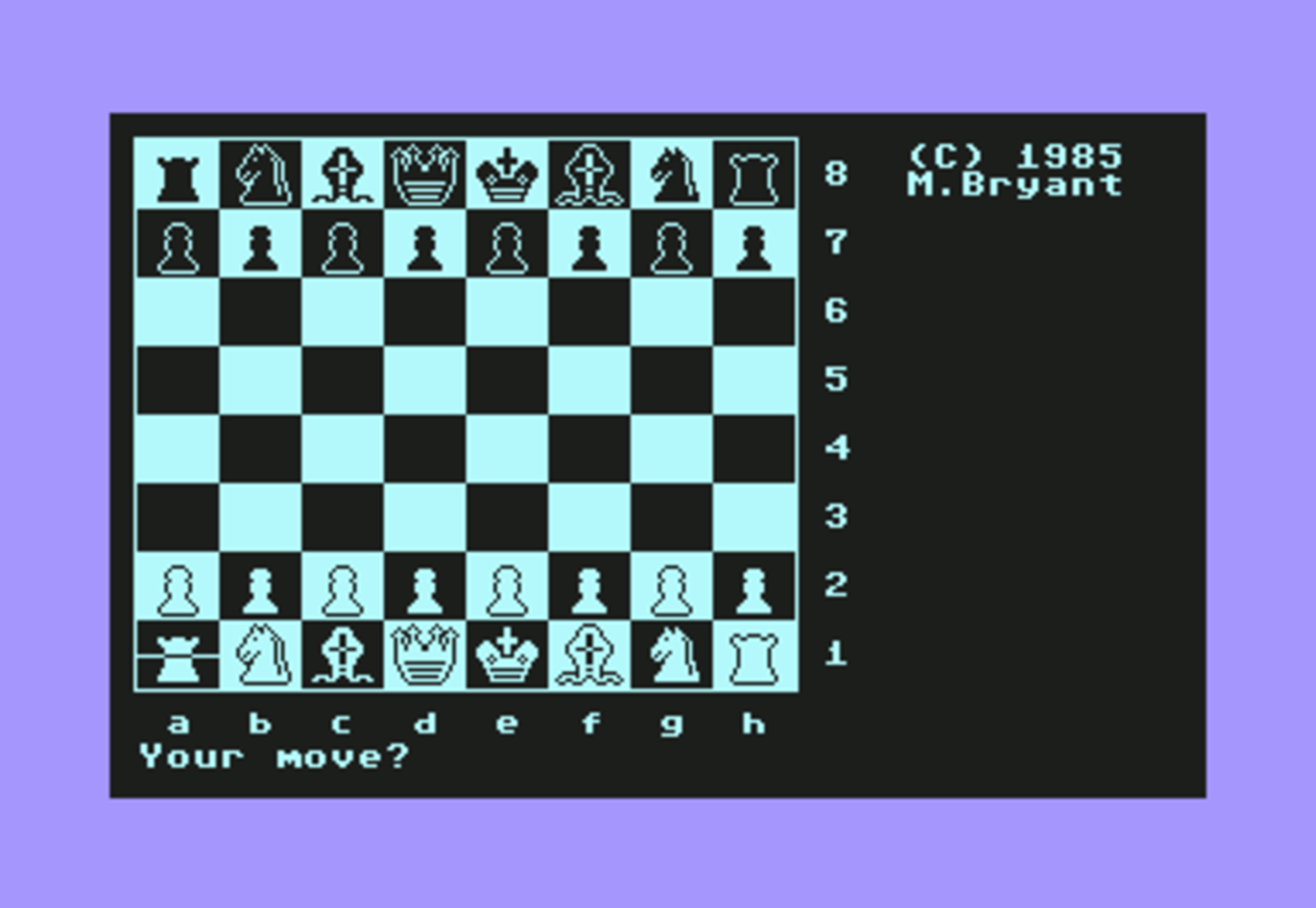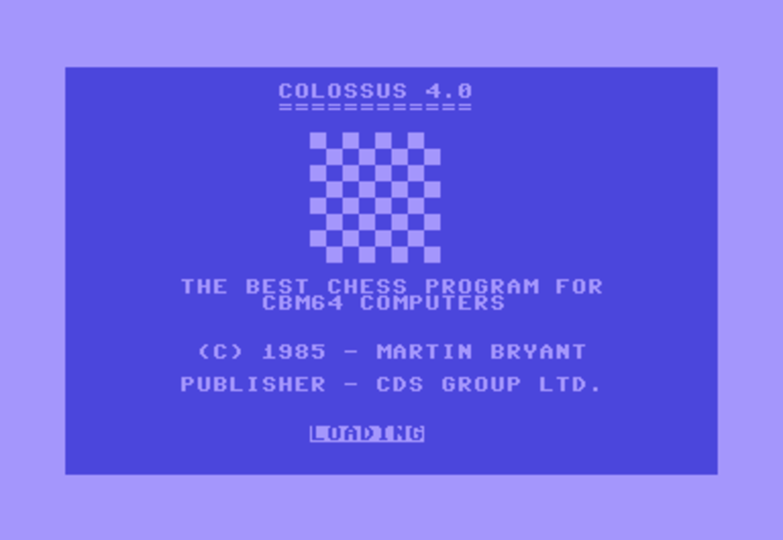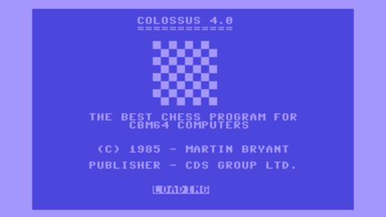 Colossus Chess 4 is a computer chess game. The game is customizable and you can monitor all your previous moves. It is even possible to see the computer thinking ahead and predicting your moves. The computer is hard to beat, and would win matches against other computer chess programs of the day. It can achieve the king-bishop-knight mate, which is the most difficult checkmate manuver possible in Chess.