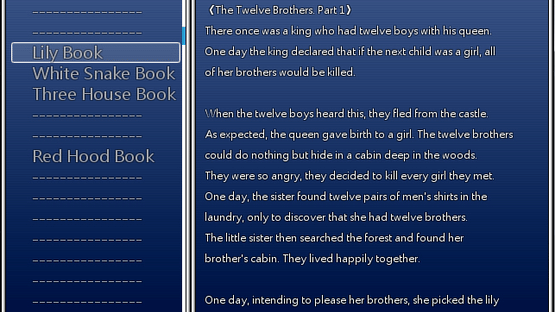 An exploration game made with 'RPG Maker'. Different from other exploration games where you solve puzzles through 'logical reasoning', these puzzles are based mainly on fairytales. Help the little girl find her favourite rabbit doll and discover the secrets of the mansion!
