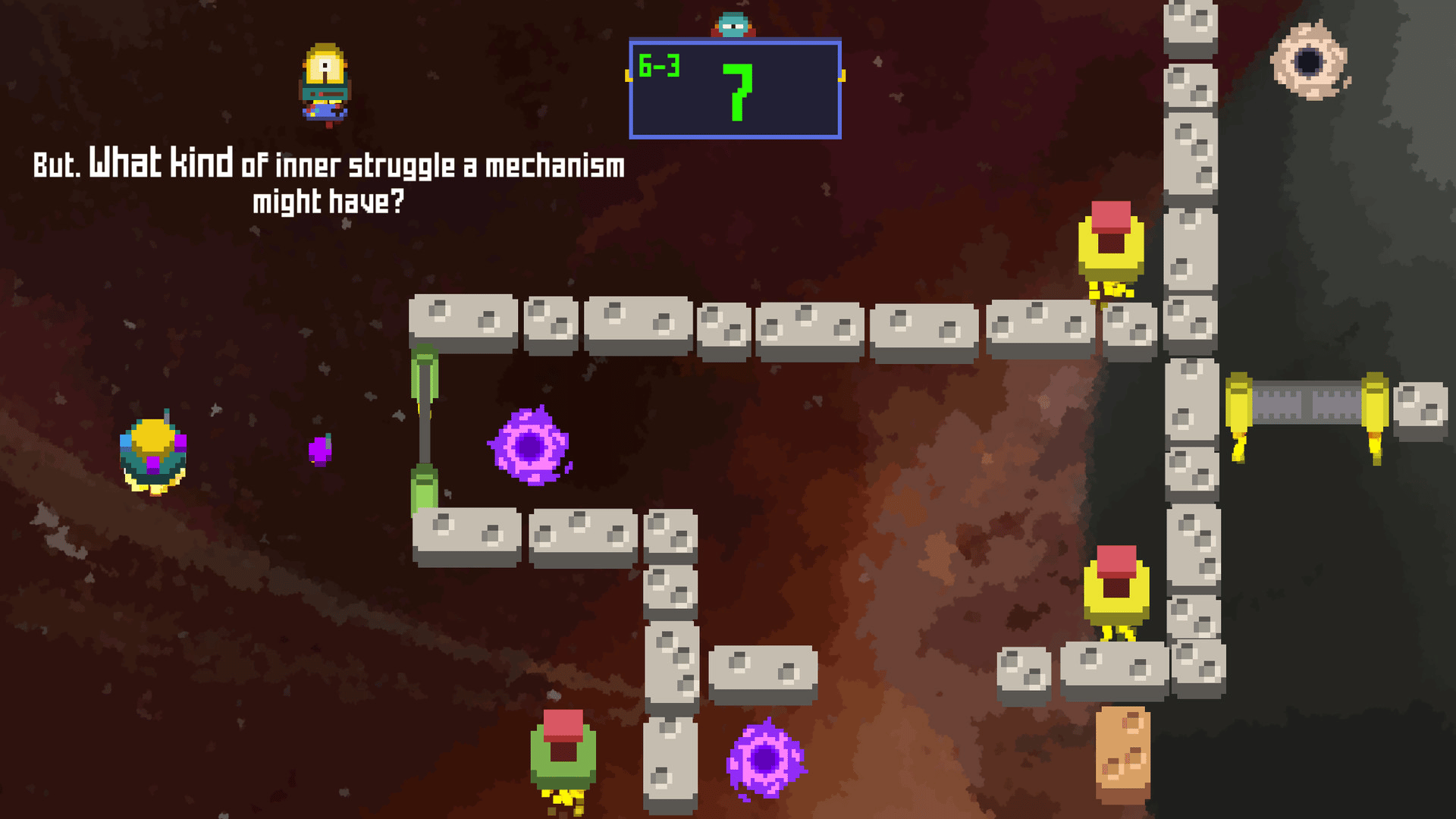 Boltzmann Brain is the hardcore 2D arcade puzzle game with local multiplayer about the Robot and his friends, who are found themselves conscious in a dark and also beautiful space. There's a lot of weird questions, but the main is - what is the reason to exist? In the end - harsh truth awaits.