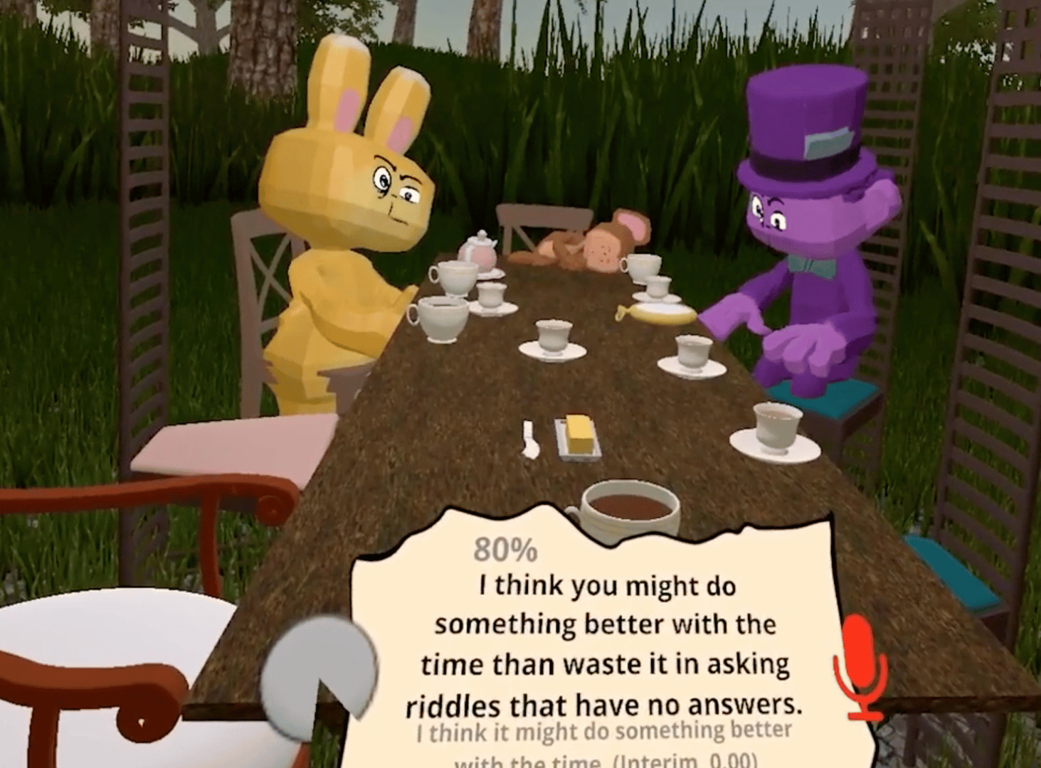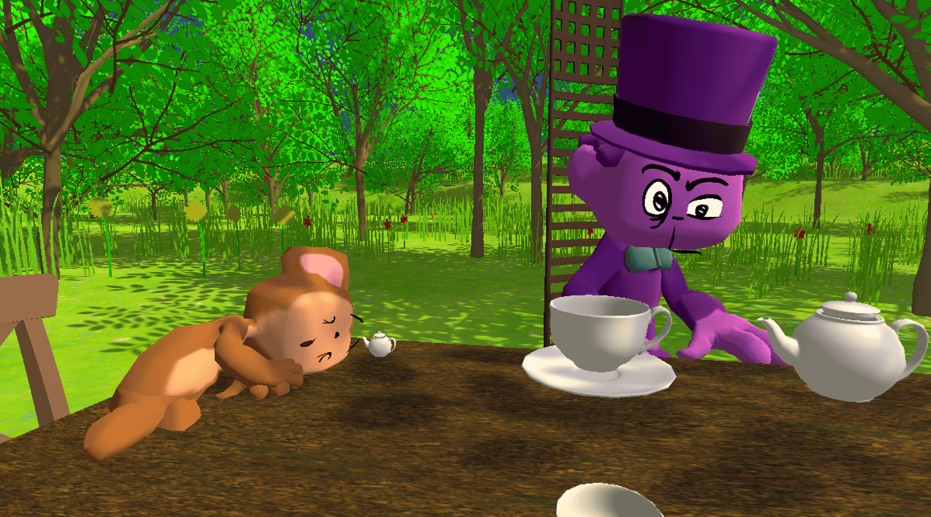 Players can take on the role of Alice, the March Hare, or the Mad Hatter in an Alice in Wonderland themed Flicksync experience. **This game requires a microphone to play**