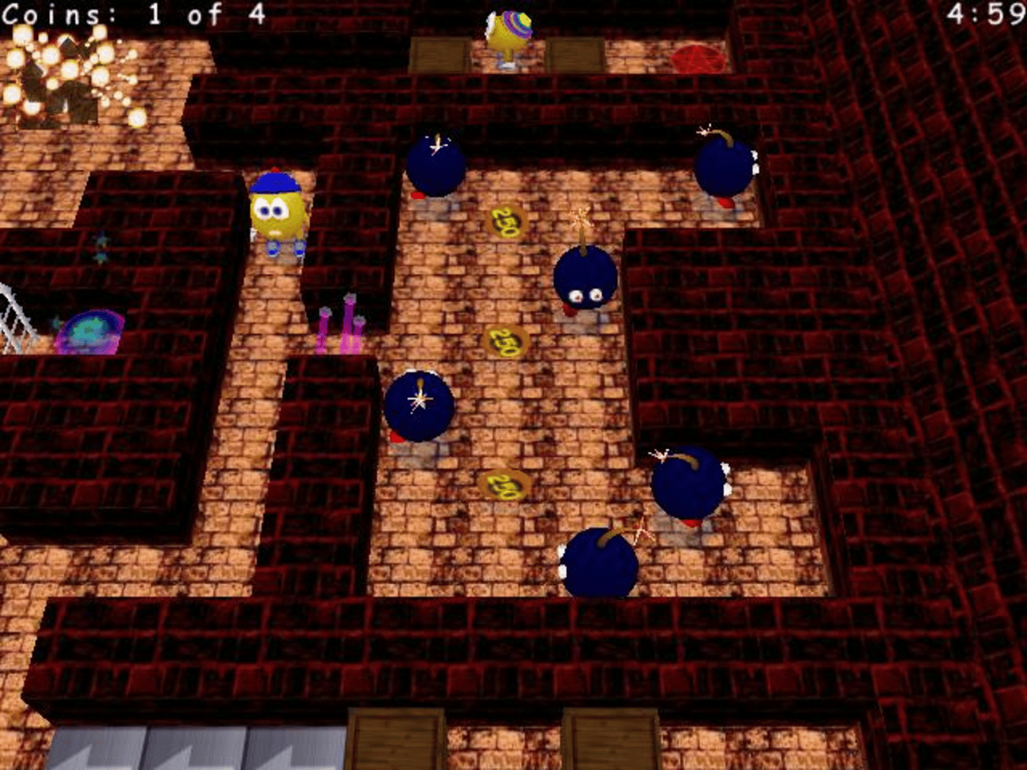 Wonderland is a top-down box pusher puzzle game. To complete one of the 60 levels, you have to collect all rainbow coins to unlock the exit and then reach the exit with all characters in the level (1 or 2). Puzzle elements include wooden crates, conveyor belts, teleporter, walking bombs and more.