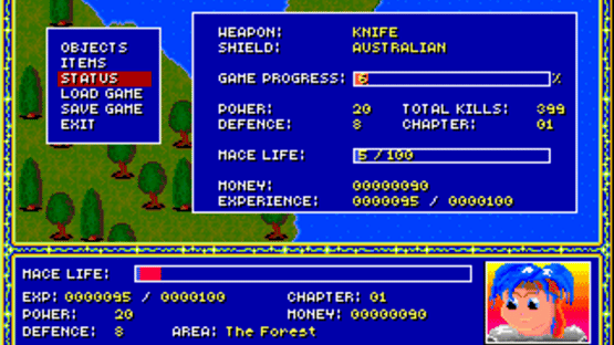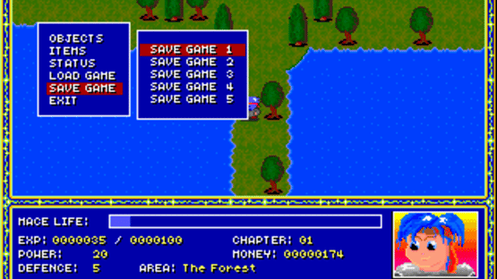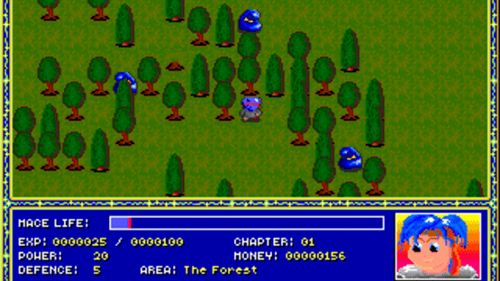 Avalon takes place in the future after the destruction of earth. A group of people known as the Avalon-cult flees to an distant planet called Avalon, which had an earth like climate. Unfortunately, one day their village was suddenly attacked by hundreds of strange creatures. The leader of the colonists, Lee, tried to negotiate with the monsters but was captured. A young man named Mace volunteers to seek for Lee and to find out what the monsters wanted in order to secure the safety of human life on the planet. The game itself is a console style RPG seen from an top-down view, where you solve puzzles, fight monsters and talk to the villagers. The battles are, like in many console RPGs, strategic and are turn-based.