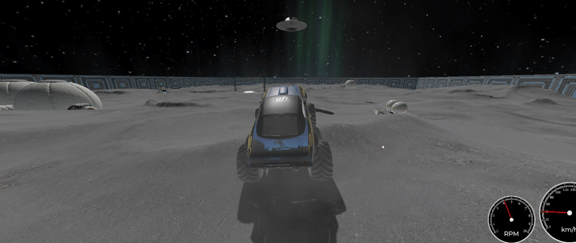 Maneuver a capable modern monster truck in 4 unique levels: arena, moon, hills and dusk. No time limits. 3 different camera views. Perfect for casual gamers.