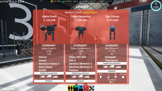 A mech tycoon simulator game. Mechsprofit takes place in the beginning of a mech industry revolution, where giant mechanized robots are as ubiquitous as cars nowadays. You, as a novice mech factory owner have to produce (profitable) commercial mechs in order to keep your factory running. Research the expansive tech tree, analyze the market, assemble the perfect mech, achieve MECHSimum PROFIT!