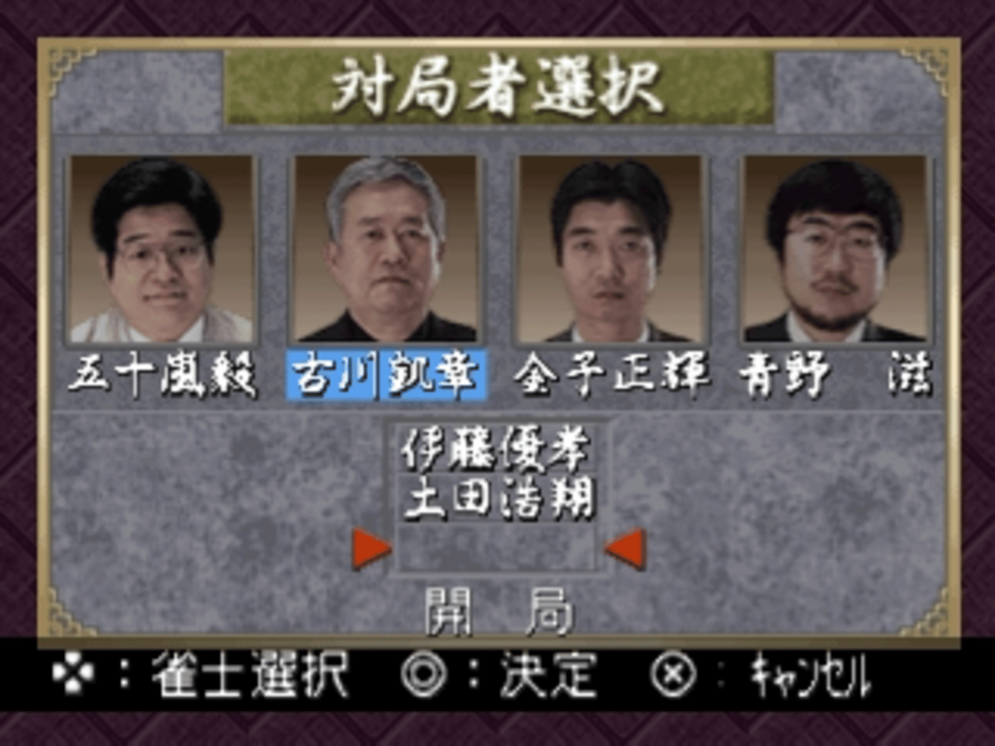 Pro Mahjong Kiwame Plus II is a mahjong game and is the second game in the series released for the Playstation One console. The game features 16 different real mahjong players as opponents and the game mode is a 4 player vs mahjong. The game got 3 game modes: Professional, Gamble & Training. Mahjong is a game for four players that originated in China. It was called, meaning sparrow in ancient China, which is still the name most commonly used in some southern Chinese dialects such as Cantonese and Minnan, as well as in Japanese. However, most Mandarin-speaking Chinese now call the game má jiàng. Mahjong involves skill, strategy, and calculation, as well as a certain degree of luck (depending on the variation played, luck can be anything from a minor to a dominant factor in winning). In Asia, mahjong is also popularly played as a gambling game. In the game, each player is dealt either thirteen or sixteen tiles in a hand, depending on the variation being played. On their turn, players draw a tile and discard one, with the goal of making four or five melds (also depending on the variation) and one pair, or "head". Winning comes "on the draw" by drawing a new or discarded tile that completes the hand. Thus, a winning hand actually contains fourteen (or seventeen) tiles.