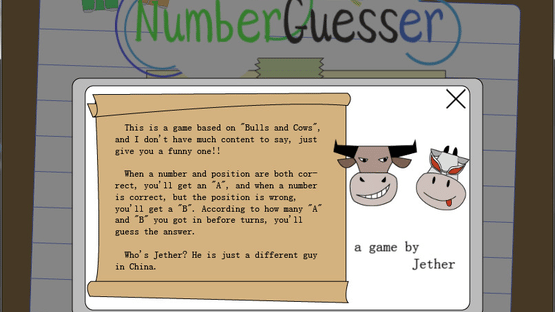 "Number Guesser" is a game based on "Bulls and Cows", and I don't have much content to say, just give you a funny one!! You can play Bulls and Cows with 3, 4, or 5 digit numbers, and see how wonderful the answer is!!