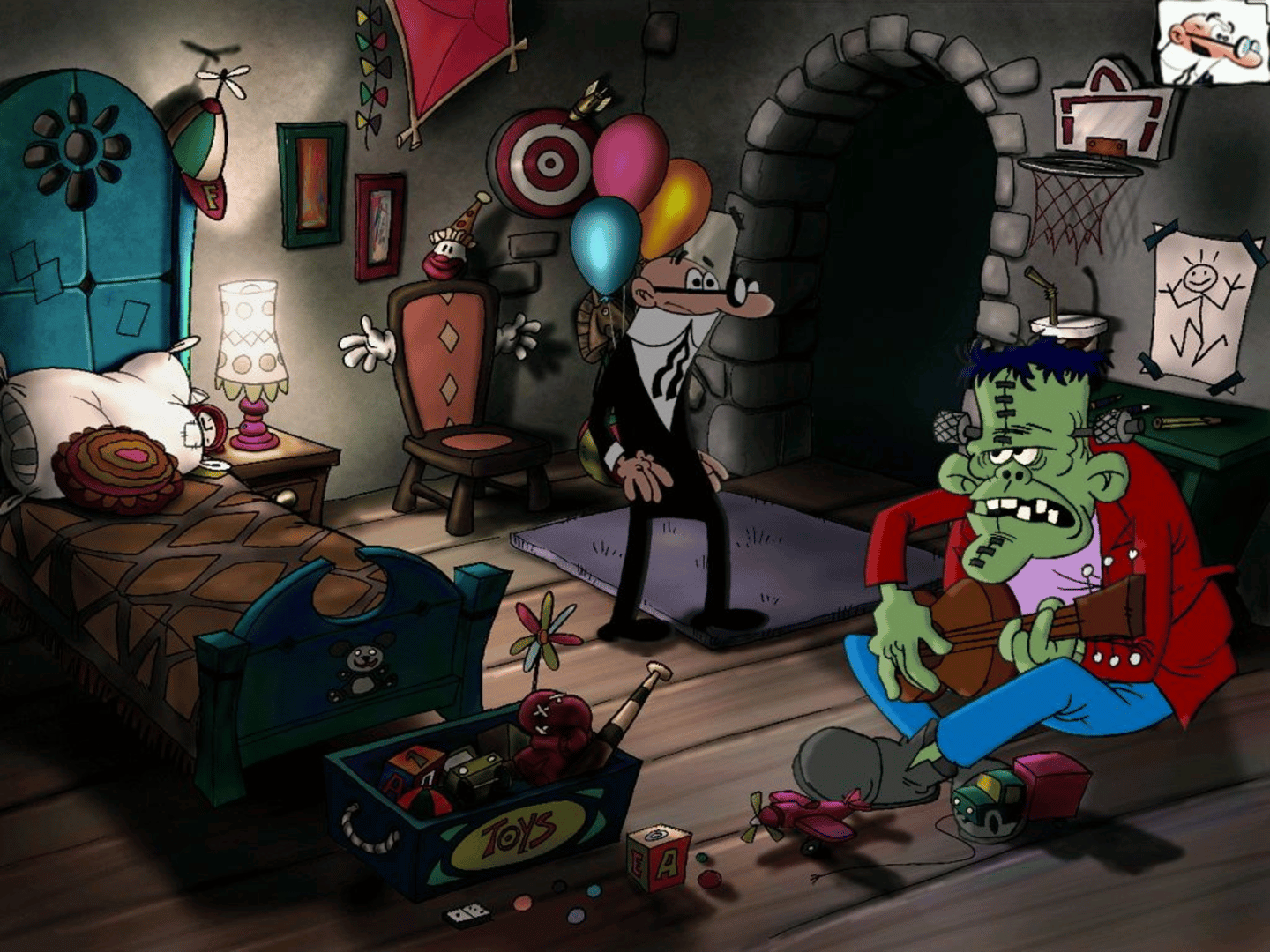 The game is a normal Point & Click adventure where you've to find items with which you can solve the riddles in the game and talk to various characters (some already known to the readers of the comic). But since Mortadelo and Filemón are a team, you can always switch between both characters. Everyone has different abilities. For example Mortadelo can disguise himself to distract someone while Filemón steals an item from the person. As a feature, never seen in an adventure before, there's also a multiplayer-mode available where one person takes control over Mortadelo and the other over Filemón.