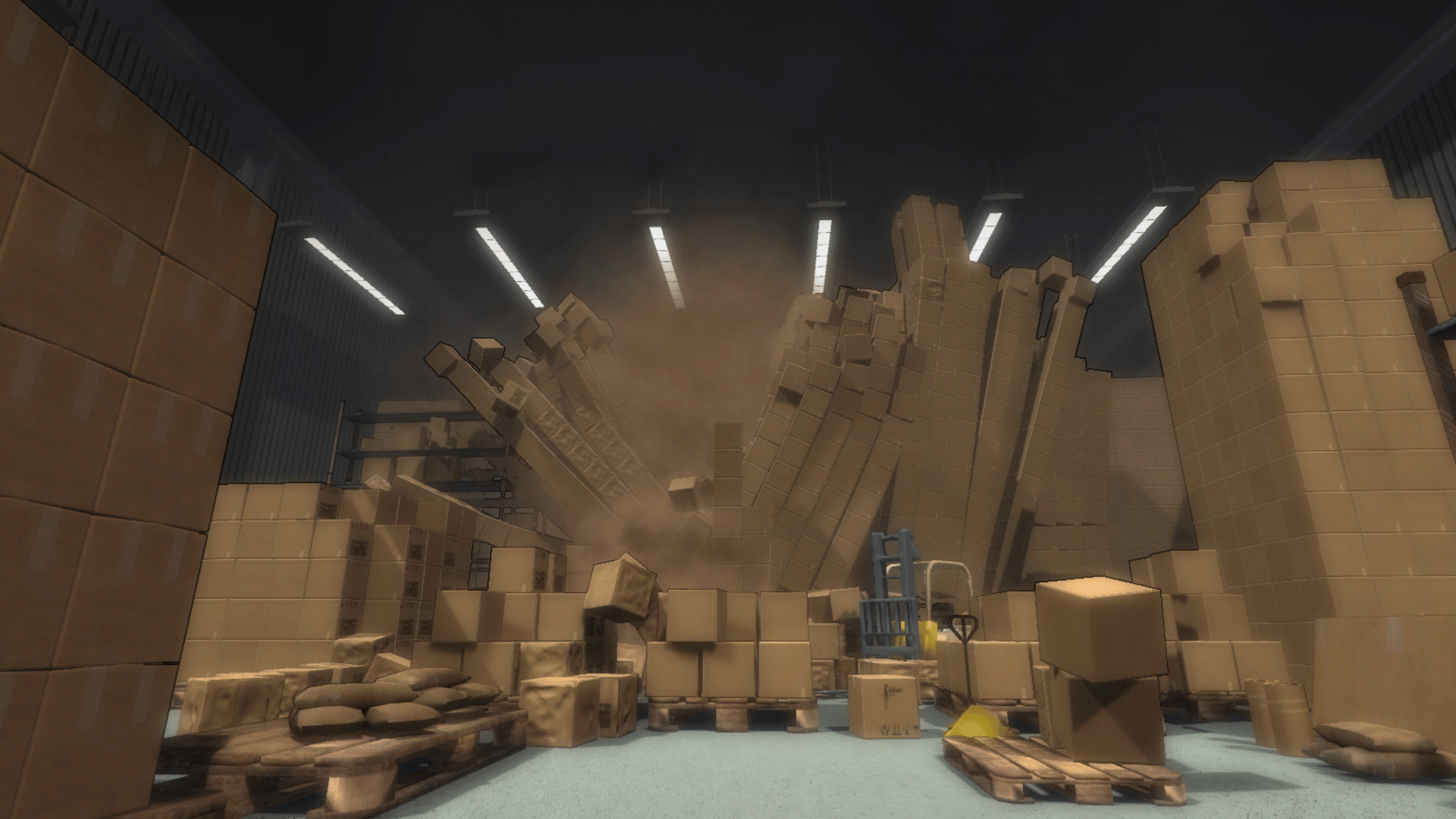 It was another night shift at your job in a warehouse, when a madman with a box on his head, took control over the complex. Now you are under his control, to get out of here you have to solve his wicked riddles and smash through his weird cardboard structures by using anything you find in the boxes.