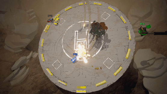 Thunder Rally is a local multiplayer demolition derby. Smash your opponents' cars off the field. If the drivers survive, run them down before they steal your car!