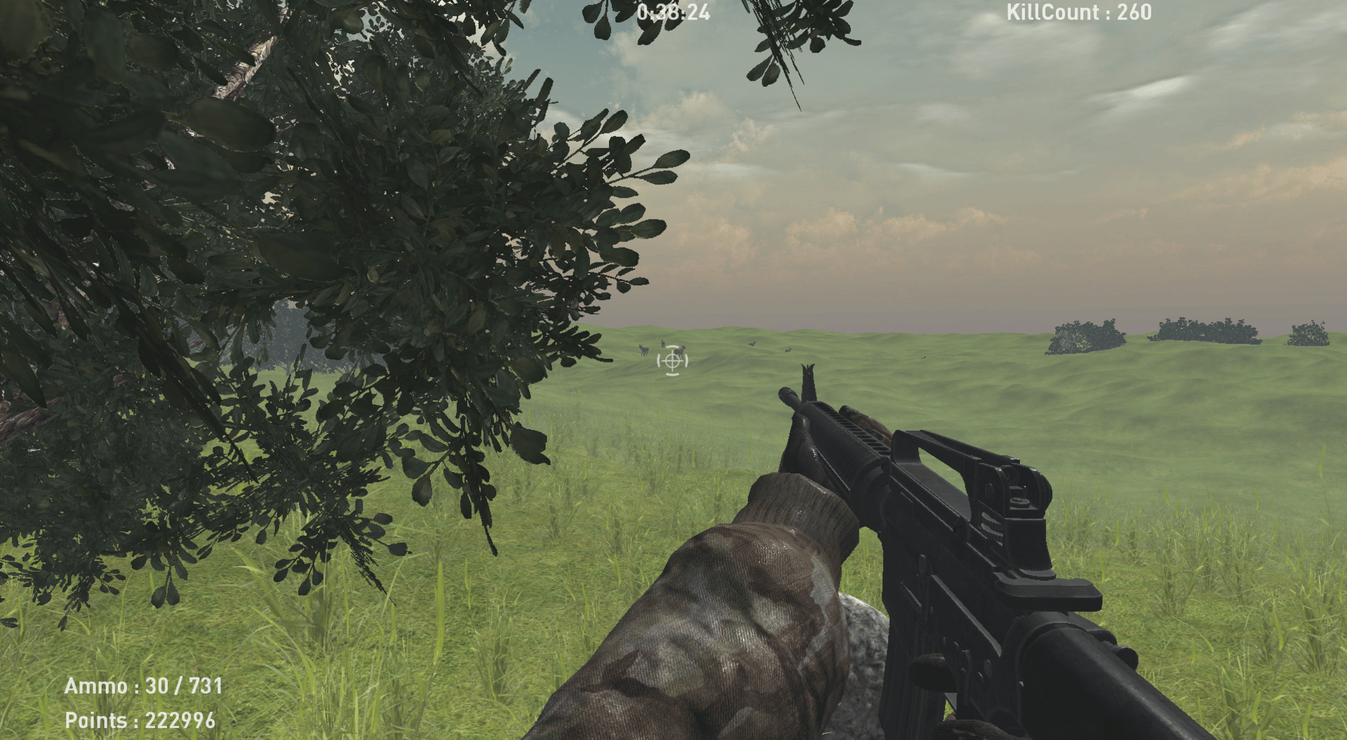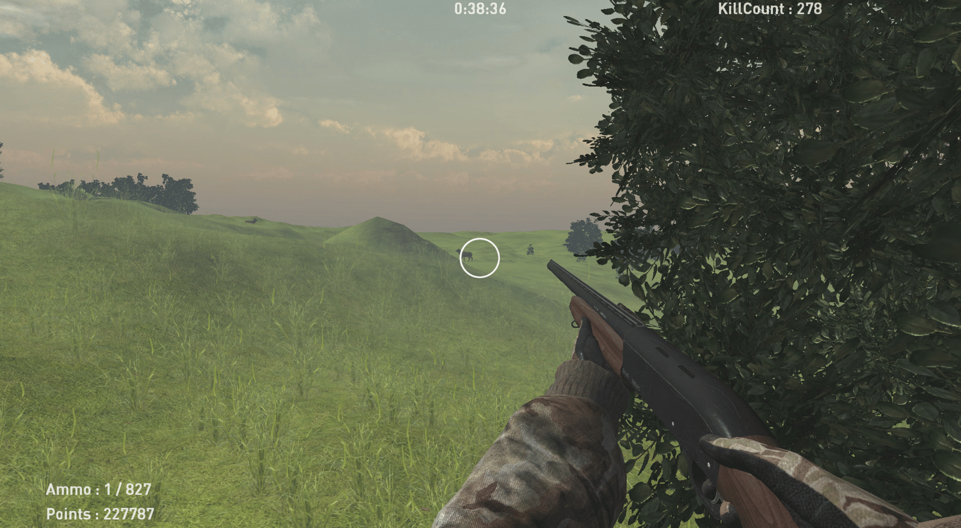 Shoot a tone of deer, earn points, buy better guns to kill deer faster.