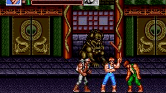 The two greatest martial arts heroes of all time are back -- in SUPER DOUBLE DRAGON, an all-new adventure with awesome new moves, impossible new missions, and a hair-raising new cast of enemies! Marian, a beautiful policewoman, is a student of Kung Fu and part-time assistant instructor at the martial arts training school run by Billy and Jimmy Lee. A narcotics investigator, she has disappeared while attempting to infiltrate the rughtless criminal mob known as the Black Shadow Warriors. It will take all your incomparable fighting skill and knowledge to find and rescure Marian. Alone, or with the help of your brother, you must face the fearsome onslaught of the Shadow Warriors with the fabled power and ferocity of the DOUBLE DRAGON!