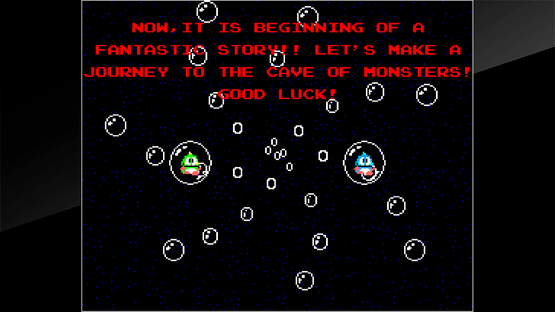 Arcade Archives: Bubble Bobble is a port of the action game Bubble Bobble. Players control the twin Bubble Dragons that are called Bubblun and Bobblun, and travel through one hundred different stages. The game became popular and led to a long series of sequels and spin-offs. The main goal of the game is to rescue their girlfriends from the Cave of Monsters.