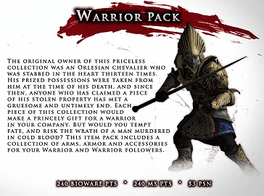 Lay waste to your enemies with this collection of arms, armor and accessories for your Warrior and Warrior followers. Features 3 follower items, player weapons and armor sets.