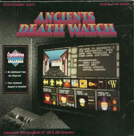 Ancients 1: Death Watch is a mystical fantasy role-playing game, bringing players deep in the underground to do battle with bizarre monsters and find untold riches in and beneath the city of Locklaven. The player uses keyboard or mouse to control a party of four explorers who journey together and must work as a team to ward off the many inhabitants of the dungeon. Said dungeon consists of several levels with increasing difficulty and the (relatively) save town above ground in which the characters can shop and heal. Combat in the game is turn-based. Character improvement uses the traditional experience system, but after a level up the guild in Locklaven has to be visited. The game allows for three races (elf, dwarf and human) and four classes (warrior, thief, mage and priest).