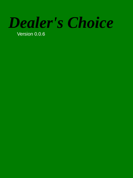 Dealer's Choice is a cross-platform, networked multiplayer poker game that supports various draw and stud variants, including optional wild cards. The deal rotates between players, and each new game allows a different player to choose the variant.
