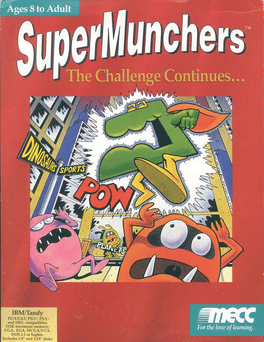 Super Munchers is a trivia action game. The player moves their muncher around a grid and eats words that fit a given clue or category. Incorrect words and a variety of critters get in the way.