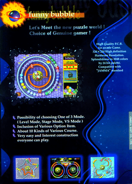 An arcade puzzle game based on Bust-a-Move/Puzzle Bobble. Instead of clearing all the balls, the goal is to clear the balls surrounding a large "drop token".