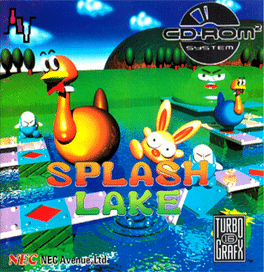 Splash Lake is an action-puzzle game for the TurboGrafx-CD and PC Engine CD-ROM. The player is an ostrich named Ozzie and must walk around a grid, pecking at certain lynchpin areas of the ground in order to collapse parts of the level into the ocean. The goal is to remove all enemies by dropping the ground they're walking on. It is structurally similar to Dig Dug 2. The game has a multiplayer mode, which allows two players to try to outmaneuver and out-think each other.