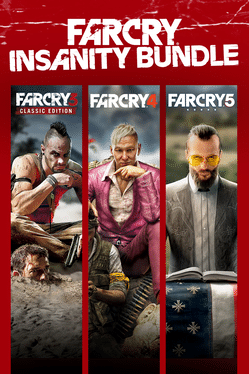 Experience the thrill of the award-winning Far Cry franchise through the Insanity Bundle. Travel to the exotic Rook Islands, survive the hills of Kyrat, and help save the land of the free in Hope County, Montana! Take on three twisted villains including Vaas, Pagan Min, and Joseph Seed in this trilogy pack that includes Far Cry 3 Classic Edition, Far Cry 4, and Far Cry 5.