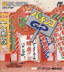 A pachinko simulator for the Famicom Disk System. It was published by Data East in Japan only. Pachinko GP (or Pachinko Grand Prix) is a Pachinko simulator from Data East for the Famicom Disk System. The goal is to play Pachinko in various machines found in Pachinko parlors across Japan, attempting to reach a Pachinko ball target (the total grows each time the player successfully fires a ball into a point-scoring zone) before a time limit expires before they move onto the next machine.