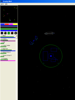 Gravity Well is a fast paced game of planetary conquest for Windows. It's a strategic war game that's played like an arcade game. The game represents a simple interstellar economy that supports the discovery and conquest of new worlds. The player's role is to scout new planets and establish landing sites for the colonization ships that follow. Once a landing site is established, freighters are dispatched to begin construction of a base and colony complex. However, there are others with the same designs on this sector of space and the player must be prepared to fight for every stinking dirtball.