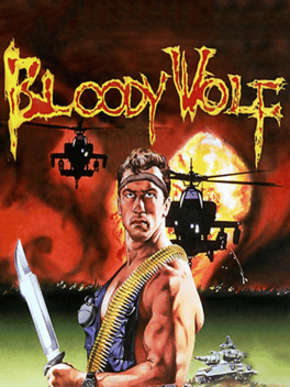 AKA: ならずもの戦闘部隊 BLOODY WOLF. Taking inspiration from games like Ikari Warriors and Commando, with a good dollop of Rambo to top it off, Bloody Wolf gives you guns, death and destruction. What more could you want? Viewed from a sort of overhead/side on angle, you have to make your way through town, river, forest and many other types of terrain with just your wits and a massive weapon under your arm. Along the way you will get the chance to rescue hostages - hiding in trucks, caves, tied to trees etc - and by opening crates you gain useful power ups. These include things like spread shot, flame thrower, rockets and frag grenades, but also contain more subtle items like flippers that allow you to move faster when ducked under water. Also, if you manage to shoot someone off their motorbike, you can get on it and race away, mercilessly running down anyone who gets in your way. At various points in the level you will come across bosses that break up the action a little. Also, you have the ability to jump