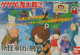 GeGeGe no Kitaro 2: Youkai Gundan no Chousen is a RPG game based on a manga and anime from Japan about a boy who is a youkai, a class of spirit-monster to which all of the main characters belong. The main character, Kitarou, is the last living member of a Ghost tribe. He is missing his left eye, but his hair usually covers the empty socket. He fights for peace between humans and yōkai, which generally involves protecting the former from the wiles of the latter. While the game follows the release of GeGeGe no Kitaro: Youkai Daimakyou (released in the U.S as Ninja Kid), it is not a direct sequel to the original game, which is an action side-scroller.
